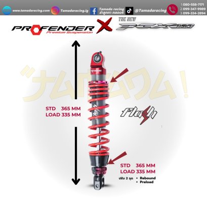 Profender Flash ตัวท็อปของทางค่าย สีดำ และ สีแดง มีความสูง 320mm และ โหลด 300mm สามารถเลือกใช้ได้ตามความต้องการ เหมาะสำหรับการใช้งานแบบ street use ,Road trip ที่เน้นความนุ่มนวล และ ยึดเกาะถนนได้ดี และ สมรรณนะขั้นสุด