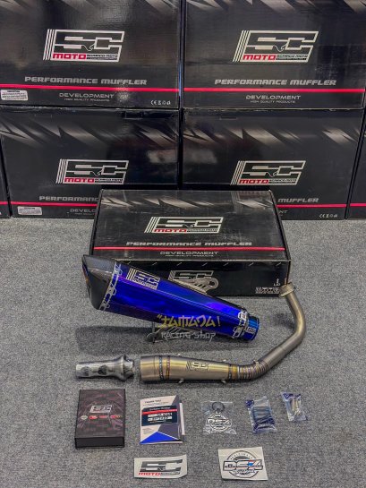 ท่อ sc moto SD-5 สีน้ำเงินเงา ปลายคาร์บอน สำหรับ Forza350 ลูกเดิม